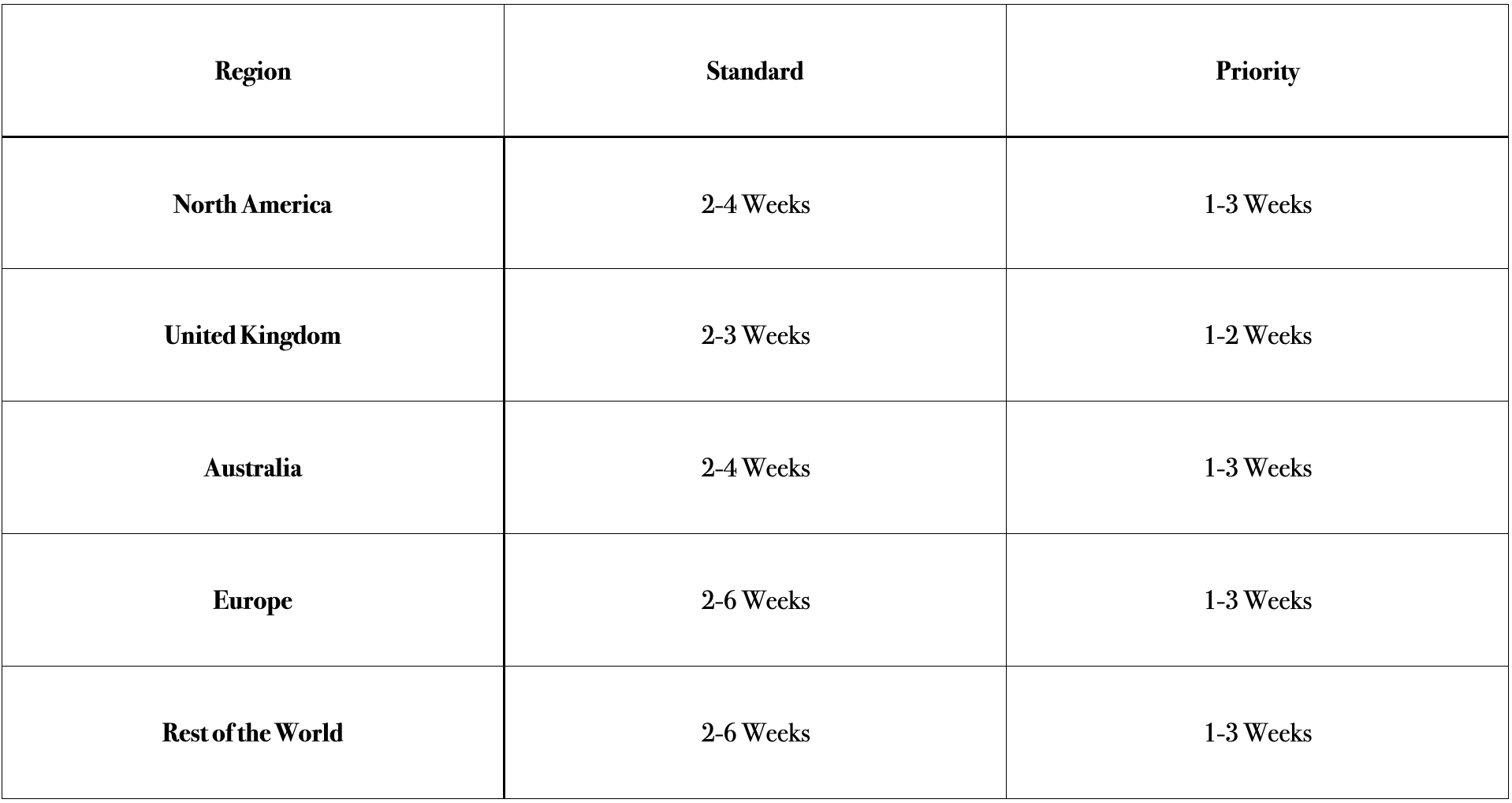 Shipping Times